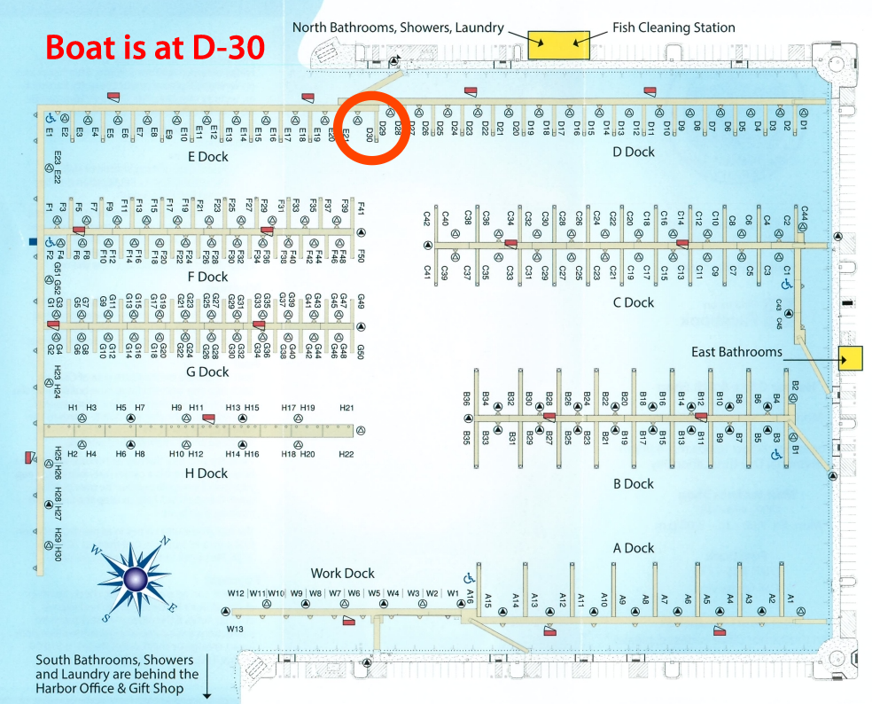 From May-February, our boat will be docked at D-30 at Crescent City Harbor, as shown in this brochure (click to download).